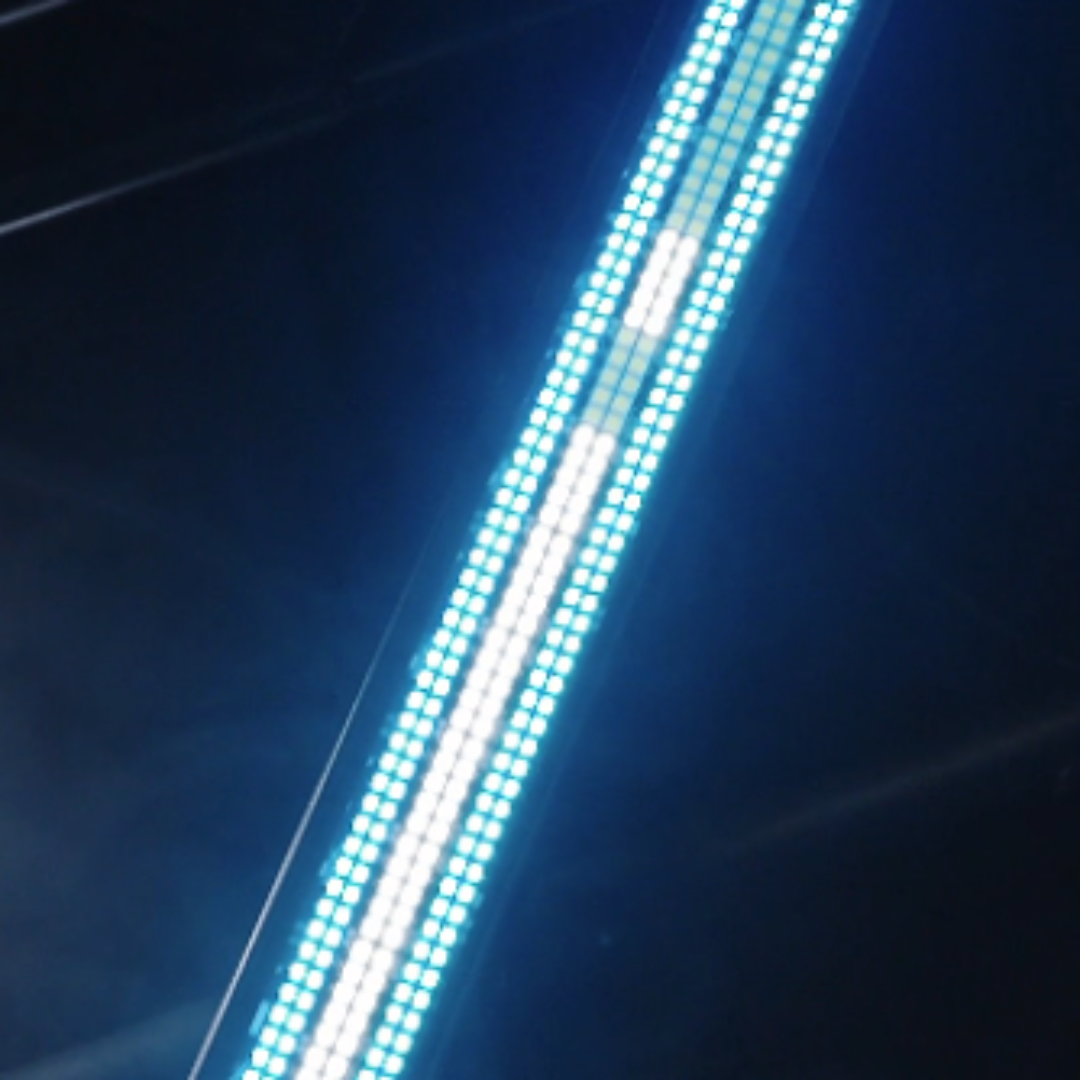 - Tubo central: 240 LEDs blancos, 24 sectores
