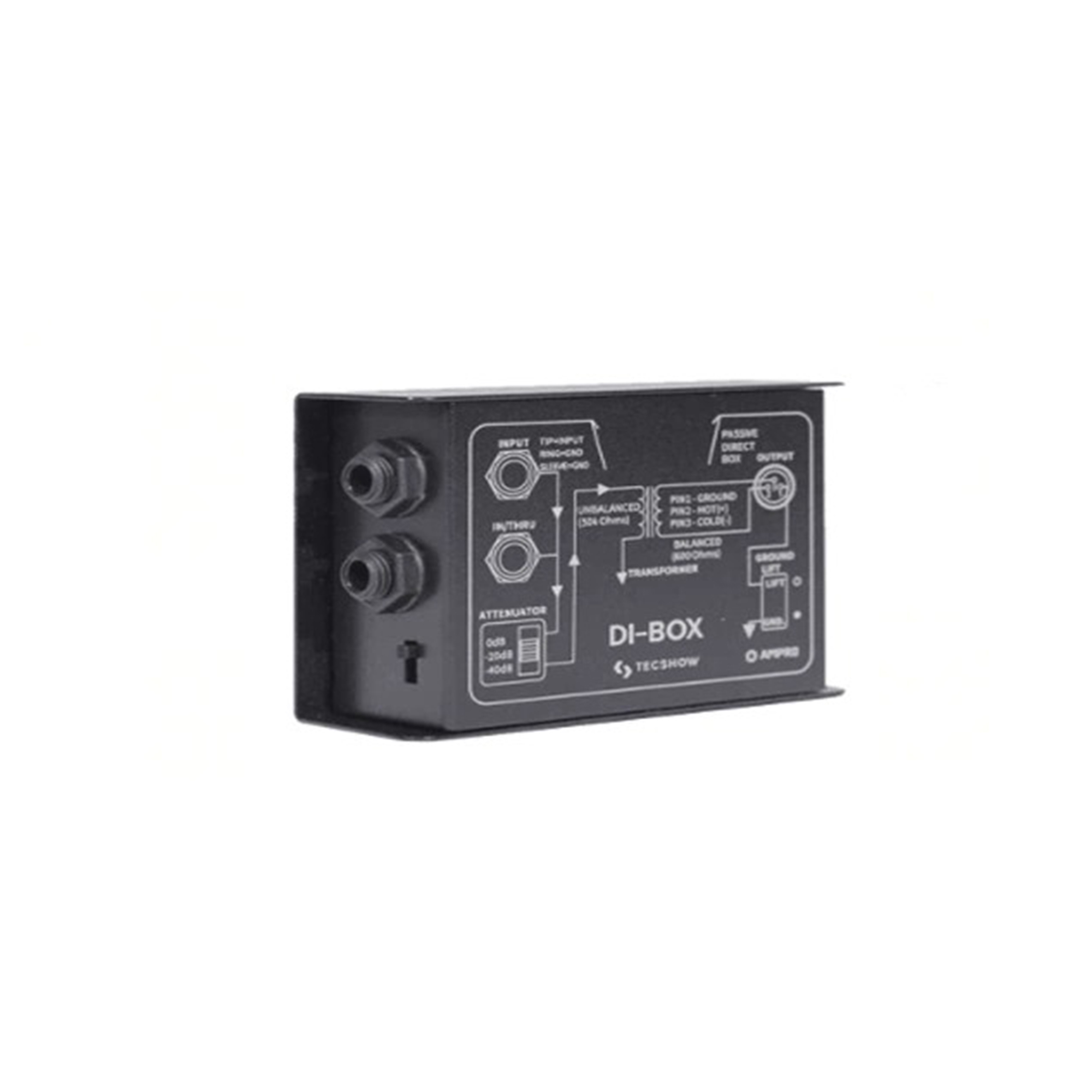 DI-BOX es una caja directa pasiva de construcción sólida que cuenta con dos conectores Plug 1/4″ y un conector XLR