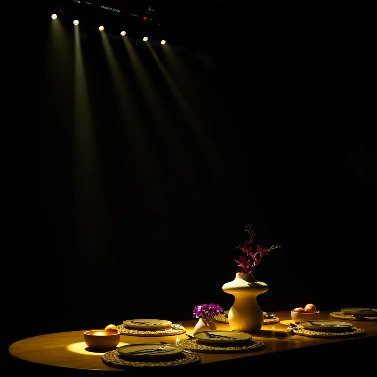 Pinspot Zoom KIT cuenta con 10 barras de iluminación de pines spot. De apertura regulable y con control DMX cada barra cuenta con 6 proyectores equipados con LEDs COB de 10W. La versión DMX ofrece 7 canales que permiten un control pin por pin, incorpora dimmer y efecto estrobo, lo cual amplía todavía más la gama de soluciones permitiendo creatividad en todo tipo de aplicaciones. Sumado al direccionamiento individual de cada uno de sus pines, una temperatura color de 2800K y un ángulo de haz regulable de 6º a 37º Pinspot Zoom es la solución ideal para ambientaciones de eventos sociales, así como también lo es para aplicaciones de tipo comercial.