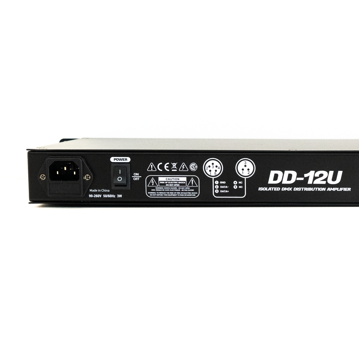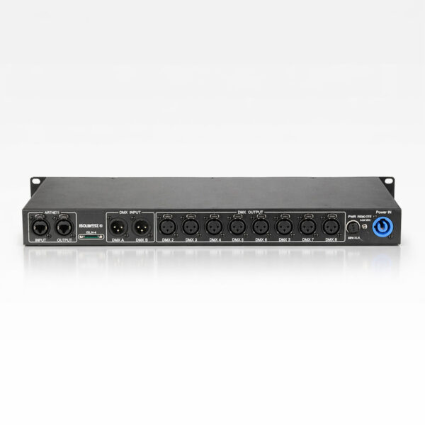 El distribuidor DMX ofrece una entrada y cuatro salidas. Tanto entradas como salidas, así como salidas entre sí están completamente aislados eclécticamente. Cada salida DMX cuenta con un controlador independiente y Indicador DATA+ y DATA-. Con el interruptor integrado, puede finalizar fácilmente la SALIDA DE ENLACE cuando… No quiero transmitir la señal DMX a otras unidades.